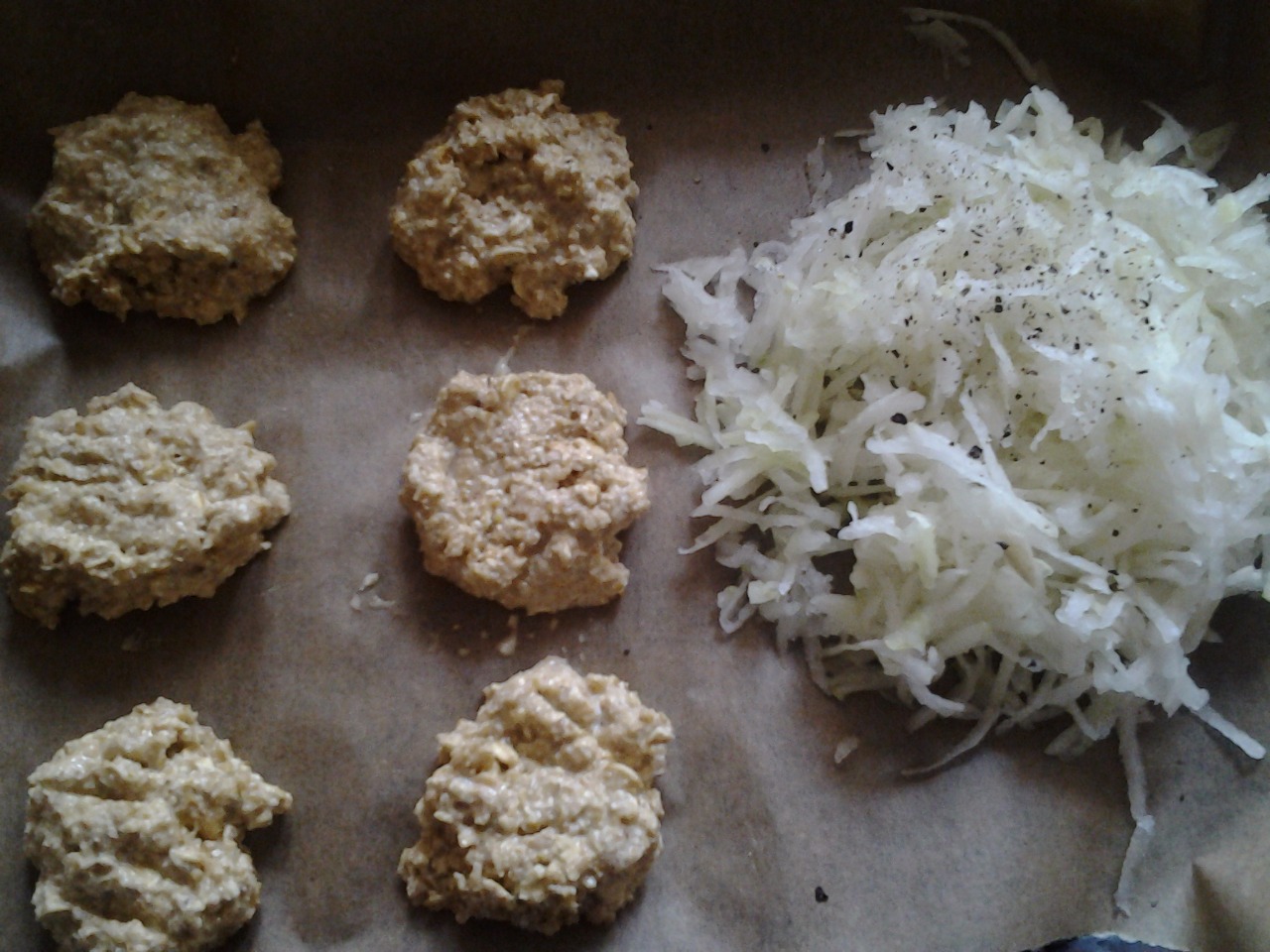 Postup: Buď si koupíte ovesnou mouku, nebo ji uděláte z vloček - já jsem si vločky rozmixovala. Přidáme trošku prášku do pečiva, celé vejce a mléko. Necháme asi 5 minut odležet a dáme na plech vyložený pečícím papírem. Pečeme, dokud tyhle mini housky nebudou mít zlatavou barvu a křupavou krustu.